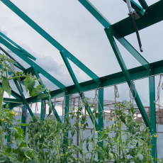 Основа теплицы — прочный алюминиевый каркас, рассчитанный на длительную эксплуатацию в условиях снеговых нагрузок и перепадов температур. Алюминий не подвержен коррозии, не требует регулярной покраски и сохраняет геометрию конструкции на протяжении десятилетий.